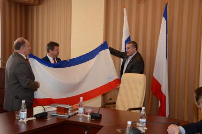 С.В. Аксенову и В.А. Константинову были вручены памятные медали ЦК КПРФ «70 лет освобождению Крыма и Севастополя от немецко-фашистских захватчиков». Также руководству республики был передан флаг Крыма, который побывал на Северном полюсе. На «макушку земли» его доставил зампред Тульской областной думы от КПРФ Ю.Ф. Моисеев.