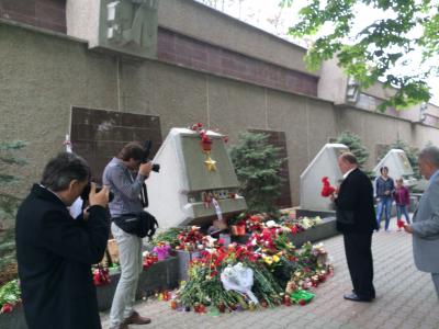После пресс-конференции лидер КПРФ возложил цветы к памятнику В.И. Ленину и памятнику защитникам и освободителям Крыма. В торжественной церемонии приняли участие представители партийного актива Волгоградской и Ростовской областей, Краснодарского края и Республики Адыгея, прибывшие в Крым для участия в праздновании 70-летия освобождения полуострова от немецко-фашистских захватчиков.