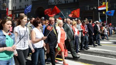 9 мая в Москве состоялись многотысячные шествие и митинг КПРФ. Акция проходила под лозунгом: «Слава Советскому народу – победителю!» Колона демонстрантов двинулась от Пушкинской к Лубянской площади столицы, где состоялся митинг. Перед его участниками выступил лидер КПРФ Г.А. Зюганов.