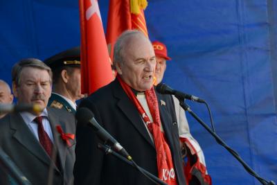Он рассказал участникам митинга, что накануне за подписью Г.А. Зюганова было направлено письмо федеральным властям с требованием в праздничные дни не закрывать щитами Мавзолей В.И. Ленина на Красной площади.