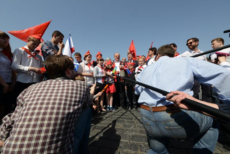 18 мая в Москве состоялся торжественный прием в ряды пионерии. Алые галстуки ребятам повязал лидер КПРФ Г.А. Зюганов.