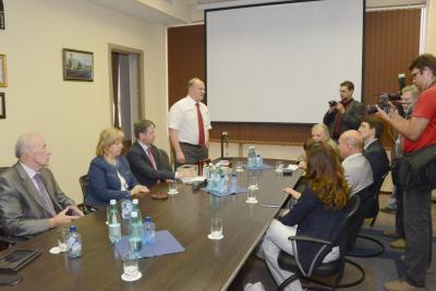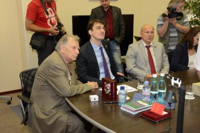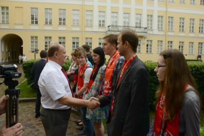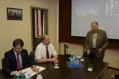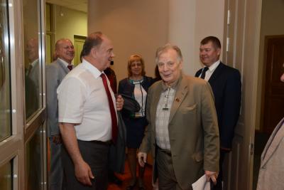 Затем Г.А. Зюганов посетил Санкт-Петербургский Академический университет – научно-образовательный центр нанотехнологий РАН. О работе этого учреждения подробно рассказал его ректор – академик РАН, Нобелевский лауреат, депутат фракции КПРФ в Государственной Думе Ж.И. Алферов. Лидер КПРФ поблагодарил Жореса Ивановича за большой вклад в дело воспитания нового поколения российских ученых. Ж.И. Алферову была вручена памятная медаль ЦК КПРФ «В честь 70-летия освобождения Крыма и Севастополя». В ходе визита Г.А. Зюганов ответил на вопросы сотрудников ВУЗа, осмотрел его учебную и научную базу.