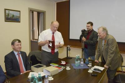 Утром Г.А. Зюганов провел пресс-конференцию в информационном агентстве «Росбалт». Он подробно остановился на ситуации в стране и в мире, особое внимание уделив событиям на Украине. Лидер КПРФ также рассказал, что на предстоящих выборах губернатора Санкт-Петербурга коммунисты будут вести консультации со всеми политическими силами, которые готовы поддержать программные установки Компартии. В пресс-конференции приняли участие заместитель Председателя ЦК КПРФ Д.Г. Новиков, руководитель Пресс-службы ЦК КПРФ А.А. Ющенко, депутат фракции КПРФ в Государственной Думе С.М. Сокол, первый секретарь Санкт-Петербургского горкома КПРФ О.А. Ходунова, первый секретарь Санкт-Петербургского обкома КПРФ Р.А. Илларионова, руководитель фракции КПРФ в Заксобрании Санкт-Петербурга В.Я. Дмитриев, лидер Санкт-Петербургского комсомола Анна Клочкова.