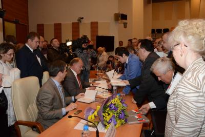 Перед началом презентации был показан документальный фильм «Человек на земле», посвященный Г.А. Зюганову. Открыл и вел встречу член ЦК КПРФ, Руководитель Пресс-службы ЦК КПРФ, депутат Государственной Думы А.А. Ющенко.