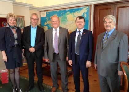 В центре внимания беседы было также обсуждение проблемы возможного запрета коммунистической партии Украины (КПУ). По мнению лидера российских коммунистов, запретительные действия на Украине схожи с теми, что происходили в 30-е годы прошлого века в нацистской Германии. «Если европейские политики с этим согласятся – это станет позорищем для Европы», - считает Геннадий Андреевич. Тини Кокс согласился с Г.А. Зюгановым, что запрет компартии – это событие, не характерное для современной европейкой практики. Стороны выработали совместные конкретные действия по предотвращению запрета КПУ.