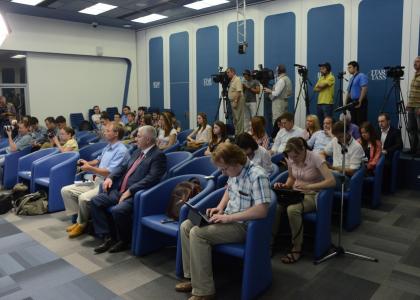 Журналисты задали участникам пресс-конференции ряд вопросов. На просьбу прокомментировать первые результаты деятельности новоизбранного президента Украины Порошенко, Г.А. Зюганов отметил, что у того была редкая возможность войти в историю Украины в роли миротворца. Однако он упустил эту возможность, запятнав себя кровью жителей юго-восточных регионов. «Потрошенко», как его уже метко окрестили украинцы, по отмашке из Вашингтона развернул широкомасштабную войну против мирного населения, даже не попытавшись разобраться в причинах конфликта и сесть за стол переговоров.