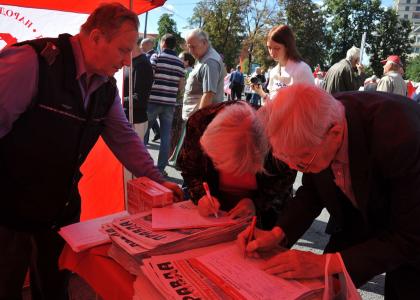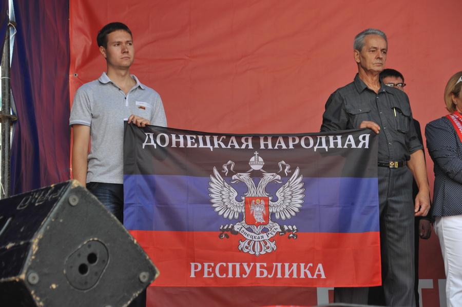 Под красными знаменами собралось несколько тысяч человек. Коммунисты, комсомольцы, представители общественных организаций Москвы, Подмосковья и других регионов прибыли в центр столицы поддержать акцию Компартии. Одновременно шел сбор гуманитарной помощи Донбассу.