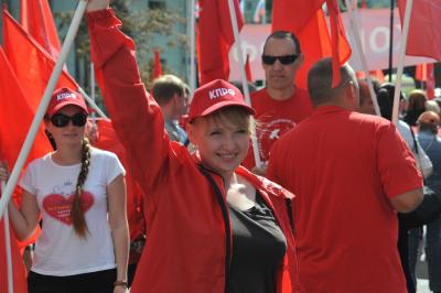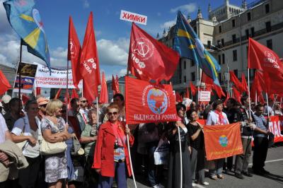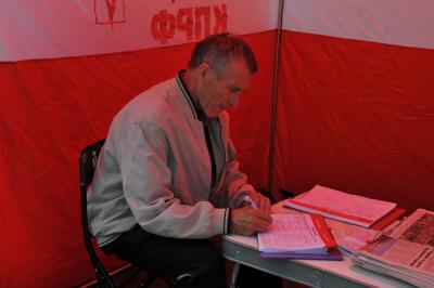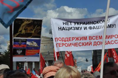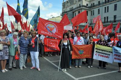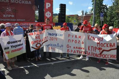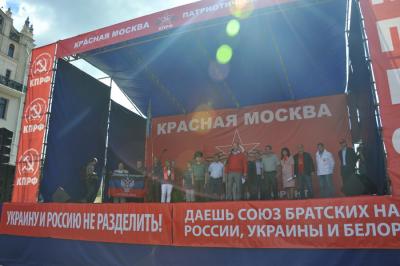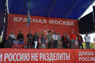 Под красными знаменами собралось несколько тысяч человек. Коммунисты, комсомольцы, представители общественных организаций Москвы, Подмосковья и других регионов прибыли в центр столицы поддержать акцию Компартии. Одновременно шел сбор гуманитарной помощи Донбассу.