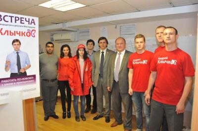 Лидер КПРФ посетил предвыборный штаб кандидата, где познакомился с волонтерами и активистами, помогающими Андрею Клычкову, и пожелал им победы на выборах.