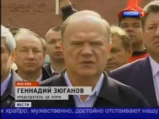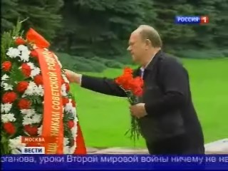 Программа "Вести" телеканала "Россия-1" показала небольшой видеосюжет об акции КПРФ у Кремлевской стены в годовщину победы СССР над милитаристской Японией. Комментарий Г.А.Зюганова был посвящен соыбтия в Новороссии.