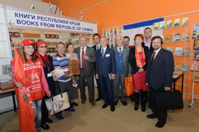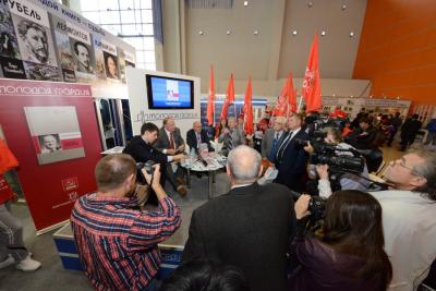 Г.А. Зюганов рассказал, что КПРФ представила на выставке свою экспозицию. «Но я очень порадовался, - отметил лидер коммунистов, - что здесь находится и прекрасный стенд наших крымских друзей. Крым и Севастополь вернулись в этом году в лоно матери-Родины, и мы их здесь с удовольствием приветствуем».