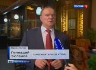 Телеканал "Россия-1" в программе "Вести" показал информационный сюжет об официальном визите в КНР делегации КПРФ во главе с Г.А.Зюгановым.