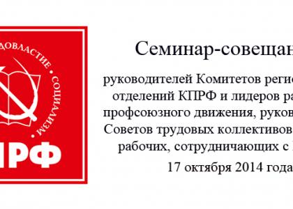 17 октября в Подмосковье начался семинар-совещание руководителей комитетов региональных отделений КПРФ, лидеров рабочего, профсоюзного движения, руководителей Советов трудовых коллективов и Советов рабочих, сотрудничающих с КПРФ.