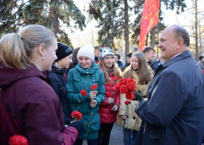 29 октября в Москве, на Университетском проспекте, состоялось возложение цветов к памятнику первым комсомольцам, приуроченное к 96-й годовщине основания ВЛКСМ. В мероприятии принял участие Председатель ЦК КПРФ Г.А. Зюганов.