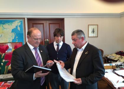 В Москве состоялась встреча председателя ЦК КПРФ, руководителя фракции КПРФ в Государственной Думе Г.А. Зюганова с одним из потомков Ф.Э. Дзержинского, бывшим морским летчиком В.М. Дзержинским.