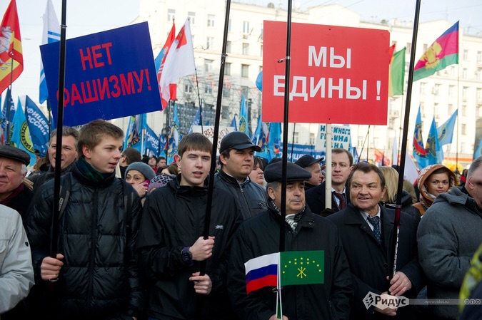 Шествие "Мы едины" в Москве завершилось митингом в Театральном проезде, где выступили лидеры политических партий, артисты и герои труда. На митинге выступил лидер КПРФ Г.А.Зюганов.