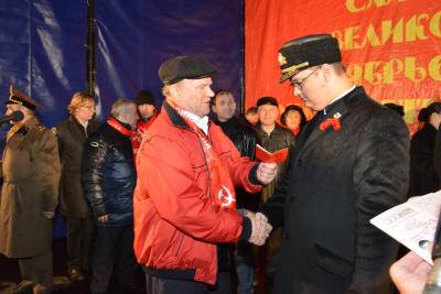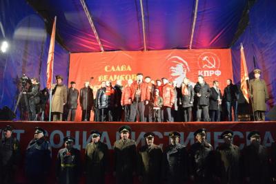 «Стране нужен новый курс, новая финансово-экономическая политика, новая социальная политика, новая сильная команда, уверенно смотрящая в будущее. Великий Октябрь и Ленин предложили такую политику. Державник Сталин ее реализовал. Его наследство в виде мощной державы и сегодня вдохновляет нас на новые подвиги. Без социализма, справедливости, без дружбы народов, без заботы о простом труженике, будь то рабочий и крестьянин, учитель и врач, инженер, ученый или военный, не решить ни одной задачи. Такая программа есть у нашей партии, и мы с вами будем ее реализовывать. Да здравствует социализм! Да здравствует Великий Октябрь! Да здравствует наша Великая Победа! Да здравствует трудовой народ – автор всех побед и свершений! С праздником, товарищи!» - так завершил свое выступление лидер КПРФ.