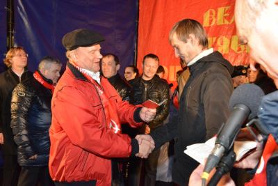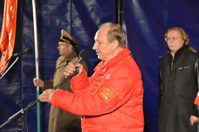 - Дорогие друзья! Уважаемые товарищи, - сказал, обращаясь к участникам митинга на Театральной площади, лидер КПРФ. – Мы должны не только праздновать День Великого Октября, но и учиться у него. На Красной площади сегодня прошел парад. Глядя на то, как он проводится, я вспомнил высказывание Георгия Константиновича Жукова, одного из самых гениальных полководцев, чьи операции изучаются во всех военных академиях мира. Его спросили: какие главные события больше всего повлияли на моральный дух и настроение советских людей в годы войны? Он сказал, что их было три. Это прежде всего речь Сталина в начале июля 1941 года, которую он начал со слов «братья и сестры», а закончил: «Наше дело правое, враг будет разбит, победа будет за нами!». Второе событие – парад 7 ноября 1941 года, когда почти 30 тысяч воинов сразу ушли на фронт защищать нашу родную столицу. И третье событие – это салют в честь освобождения Орла и Белгорода, когда мы сломали хребет фашистскому зверю.