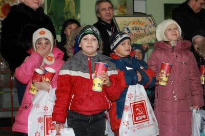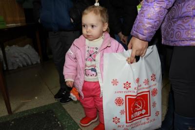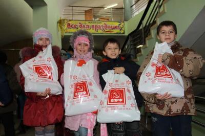 Благотворительную акцию «КПРФ дарит праздник детям Новороссии», инициированную Председателем ЦК Компартии Российской Федерации Геннадием Андреевичем Зюгановым, Первым заместителем Председателя ЦК КПРФ, первым вице-спикером Госдумы РФ Иваном Ивановичем Мельниковым, Заместителем Председателя ЦК КПРФ, Председателем Комитета Государственной Думы ФС РФ по природным ресурсам, природопользованию и экологиии, Руководителем Общероссийского штаба протестных действий, академиком РАСХН Владимиром Ивановичем Кашиным и привезли в Луганск и Донецк депутаты Государственной Думы РФ К.К. Тайсаев и В.Р. Родин 17 декабря.