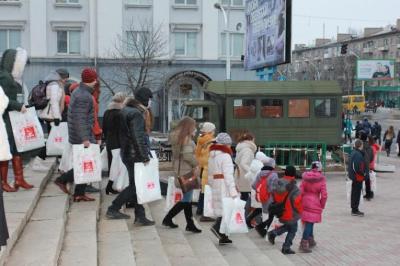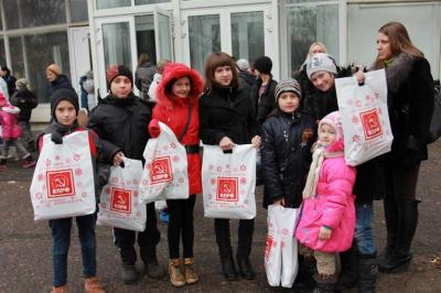 По прибытии к месту назначения подарки были распределены по детским садам и школам, а также доставлены в дом для детей-инвалидов. Часть подарков вручили в торжественной обстановке в Русском драматическом театре на Новогодней елке. И несмотря на то, что зал театра был рассчитан на 750 мест, участие в мероприятии приняло более 1000 детей со всех городов и районов Луганской народной республики (отличники учебы). На елке их ждал праздничный концерт с участием артистов Луганского академического республиканского русского драматического театра им П. Луспекаева, луганских детских творческих коллективов и, конечно, неизменных Деда Мороза и Снегурочки.