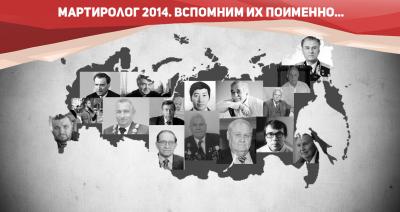 В ушедшем 2014 году не стало многих людей, которые своей жизнью доказали верность светлым идеалам социальной справедливости и братства людей труда, державности и социализма. Каждый из них вписал свою светлую страницу в историю Коммунистической партии, нашей страны.