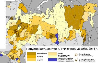 На 1 января 2015 г. партийные сайты были созданы в 83 субъектах РФ. Не был создан сайт в Ингушском республиканском и Севастопольском городском отделениях КПРФ.