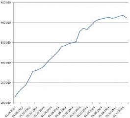 Данный сегмент в 2014 г. тенденцию к деградации – наметилась убыль числа подписчиков составившая 814 чел. При этом доля подписчиков приходящаяся на данный сегмент относительно общего числа подписчиков у всех групп рейтинга Топ 100 упала выросла: с 7 до 5%