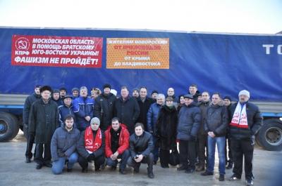 Мне хотелось бы поблагодарить организации, которые внесли наибольший вклад в этот конвой. Это коммунисты Подольского, Ленинского, Ногинского, Серпуховского районов, Мытищ, Щелково, Одинцово и ряда организаций, которые продолжают активно работать над оказанием гуманитарной помощи жителям Луганской и Донецкой областей. Большое спасибо активу – они делают большое и нужное дело для жителей Новороссии. Фашизм не пройдет!».