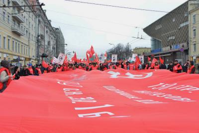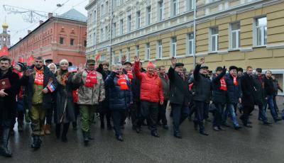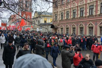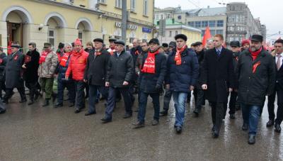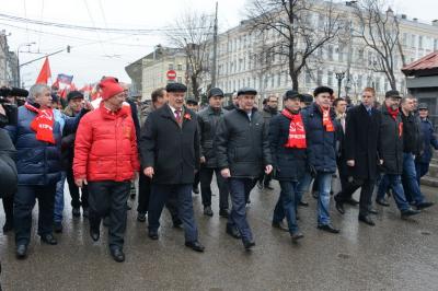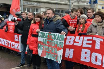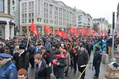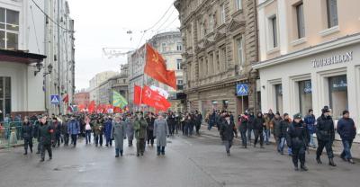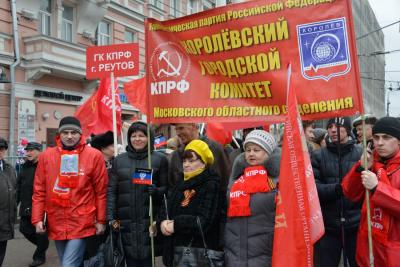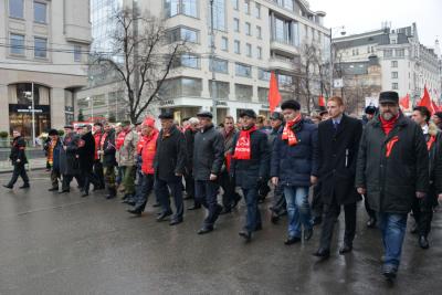 Тысячи людей под красными знаменами прошли от Пушкинской площади до площади Революции, где состоялся митинг. Его вели заместитель Председателя ЦК КПРФ, первый секретарь Московского горкома КПРФ (МГК КПРФ) В.Ф. Рашкин и секретарь МГК КПРФ А.В. Потапов.