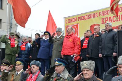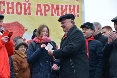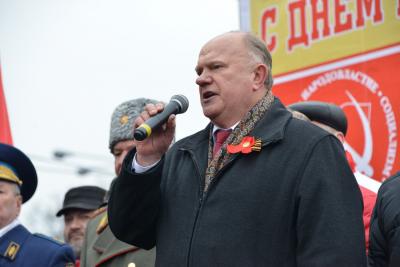 «Да здравствует Красная армия! Да здравствуют защитники державы! Да здравствует обновленный социализм, который будет построен в нашей стране!» - так завершил свое выступление лидер КПРФ.