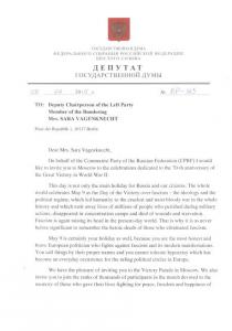 национальностей Валерий Рашкин направил Саре Вагенкнехт официальное приглашение