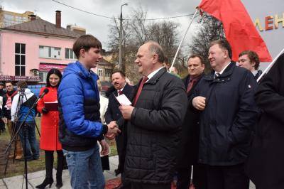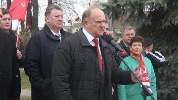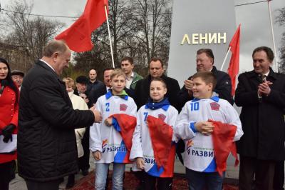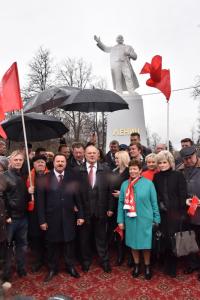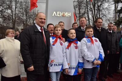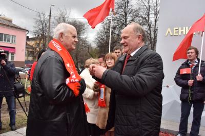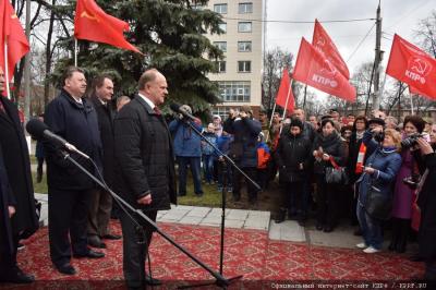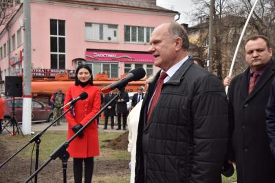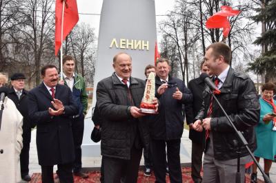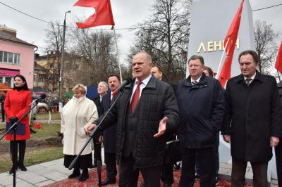Затем Г.А. Зюганов принял участие в митинге, посвященном открытию после реконструкции памятника В.И. Ленину. Лидер КПРФ выступил перед собравшимися.