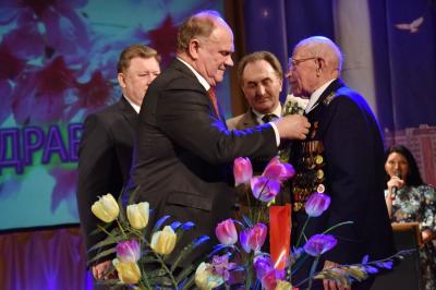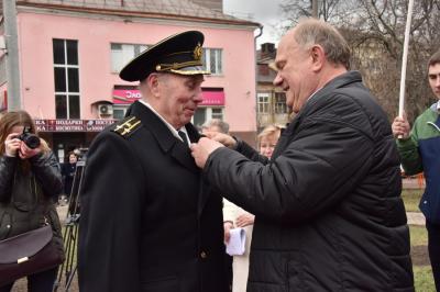 Лидер КПРФ вручил юбилейные награды ветеранам, а также партийные билеты вновь принятым товарищам.