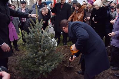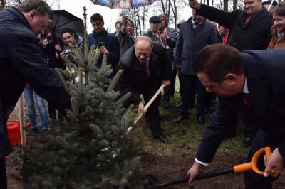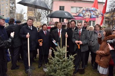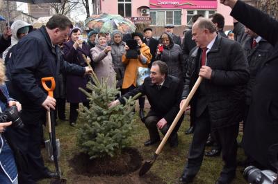 В завершение мероприятия Г.А. Зюганов и А.Н. Ходырев заложили возле памятника В.И. Ленину на пересечении улиц Октябрьской и Ленина новую аллею, высадив несколько елей.