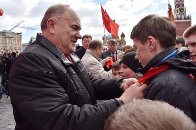 повязаны красные галстуки. Затем Г.А. Зюганов наградил памятной медалью ЦК КПРФ