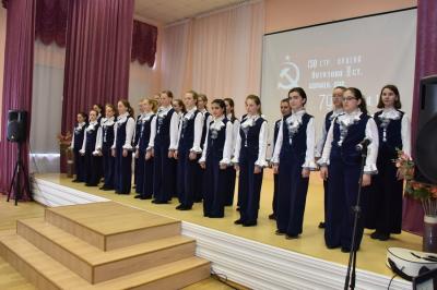 песни о войне в исполнении детского хора. В торжественной обстановке двум
