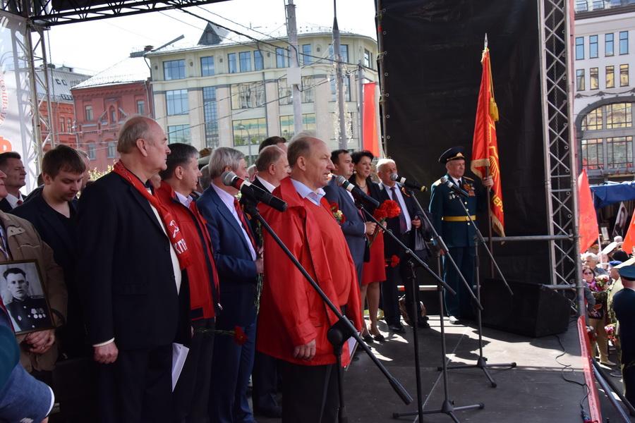 Участники акции, стартовавшей от Пушкинской площади столицы, несли портреты полководцев победы во главе с Генералиссимусом И.В. Сталиным, а также участников Великой Отечественной войны. Шествие завершилось на Лубянской площади, где состоялся митинг. Его вели заместитель Председателя ЦК КПРФ, первый секретарь Московского горкома КПРФ, депутат Госдумы В.Ф. Рашкин и секретарь Московского горкома КПРФ, депутат Госдумы А.В. Потапов.
