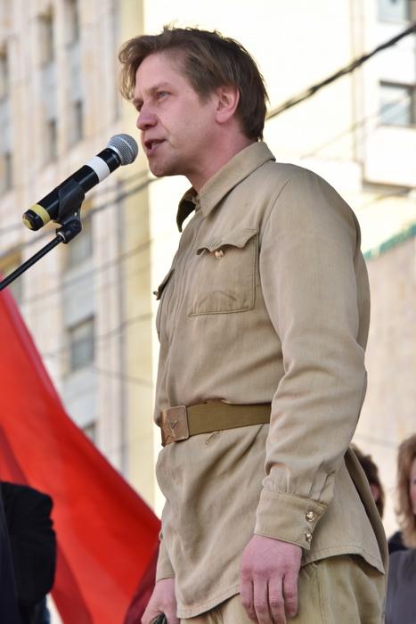 «Семьдесят лет назад наши отцы, деды и прадеды проявили великий героизм. Коммунизм и советская власть одержали верх над империализмом и фашизмом, и над поверженным рейхстагом было водружено Красное Знамя Октября и Победы с пролетарским символом – серпом и молотом», – сказал В.Ф. Рашкин, открывая митинг.
