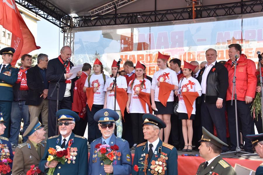 - Дорогие друзья! Мои товарищи! – обратился к участникам акции Геннадий Андреевич. – Сегодня от Тихого океана до Балтики прокатилась волна прекрасных шествий, великолепных митингов и убедительных парадов. Я с гордостью смотрел, как вспоминали о великой советской стране, о победоносной Красной Армии, о храбром русском солдате, который объединил общую волю народов СССР для этой удивительной и исключительно важной для всего мира победы.