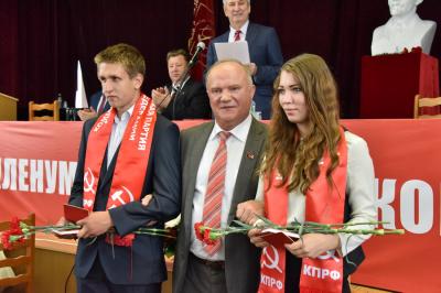 В работе Пленума принимают участие около 500 человек. В начале заседания по сложившейся традиции состоялось вручение партийных билетов новому пополнению КПРФ. Лидер коммунистов Г.А. Зюганов отметил, что по призыву,посвященному 70-летию Победы, в ряды партии принято более 20 тысяч человек, в основном молодых людей.