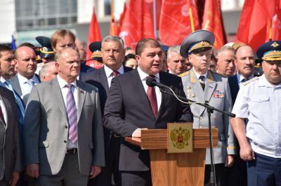 водружения красного знамени начался торжественный митинг. Его открыл губернатор