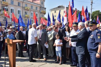 торжественной церемонии приняли участие коммунисты и комсомольцы, сторонники