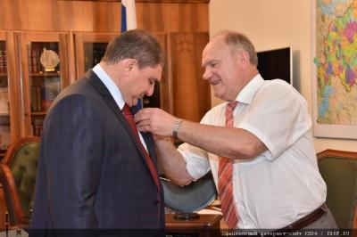 завершение Г.А. Зюганов вручил В.В. Потомскому юбилейную медаль ЦК КПРФ «70 лет