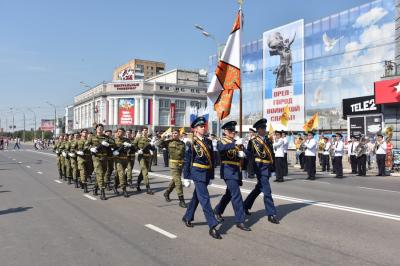участниками митинга прошли парадным маршем бойцы ВДВ. Собравшиеся почтили