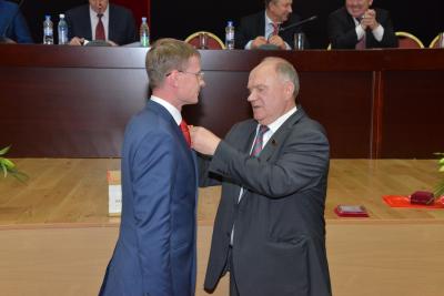 Зюганов вручил награды и памятные подарки отметившим свои юбилеи товарищам.
