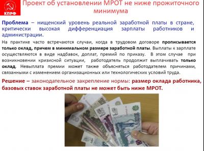 установить минимальную зарплату не ниже прожиточного минимума. Нами также внесен