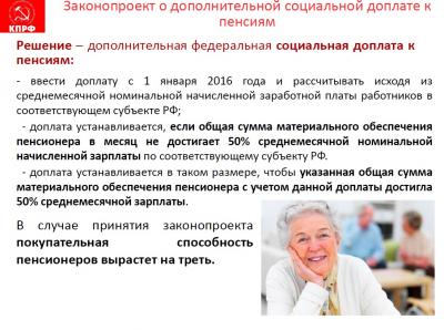 дополнительной социальной доплате к пенсиям. Мы добиваемся, чтобы уровень
