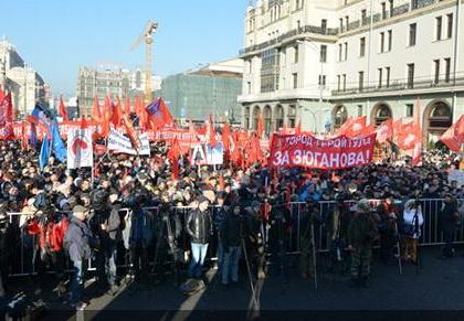 демонстрантов прошли от Пушкинской площади до площади Революции. Вели митинг