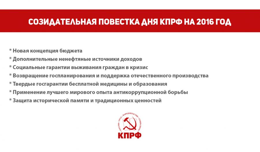 поддержать талантливых людей. В этой связи мы подготовили созидательную повестку дня КПРФ. Мы