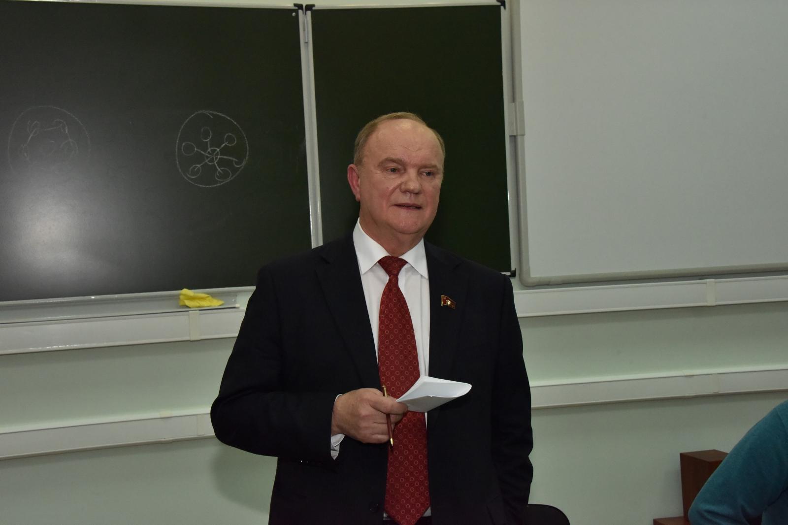 Лидер российских коммунистов выступил с развернутой лекцией, в которой осветил важнейшие исторические события в жизни нашей страны, начиная от Александра Невского, Дмитрия Донского, Ивана Грозного до горбачевской «перестройки», ельцинской смуты и наших дней.